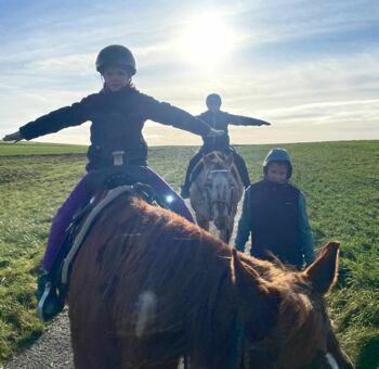 Bis zu 4 Kinder zwischen 3-7 Jahren (max. 22 kg) mit den beiden Ponys „Keks“ & „Muffin“. Die Ponys werden geputzt, geführt, die Kinder machen ihre ersten Erfahrungen auf dem Pferderücken. Kooperative Spiele, spielerischer Aufbau, viel positive Erfahrung.