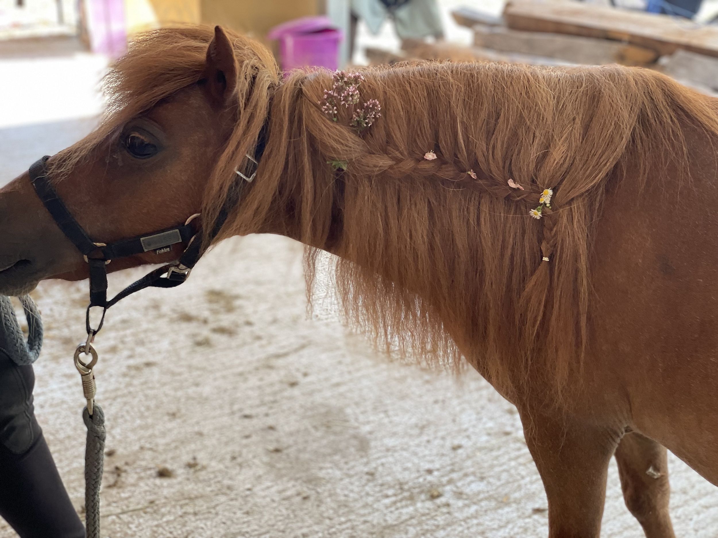 Ich arbeite hauptsächlich mit Ponys und Kleinpferden, daher liegt das Maximalgewicht bei ca. 90 kg bzw. 22 kg für die „magische Ponystunde“. In einigen Fällen bietet es sich an, mit dem Pferd ausschließlich vom Boden aus zu arbeiten.